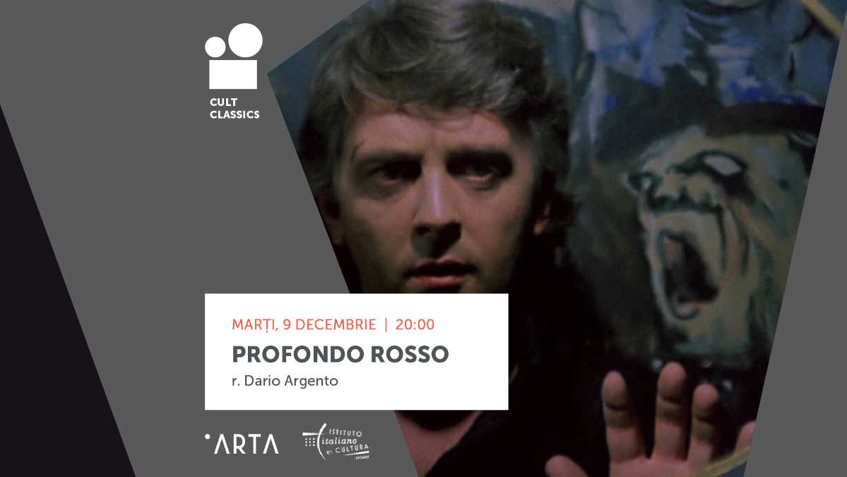 În cadrul seriei CultClassics, Cinema ARTA, în parteneriat cu Institutul Italian de Cultură din București, prezintă ‘Profondo Rosso’ (1975), în regia lui Dario Argento - o proiecție specială ce marchează 50 de ani de la lansarea filmului.