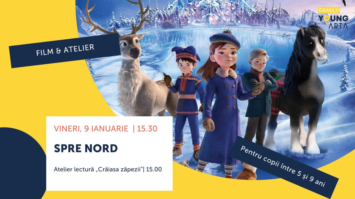 De aceea, înainte de film, de la ora 15.00, vă așteptăm la o lectură din „Crăiasa zăpezilor”.